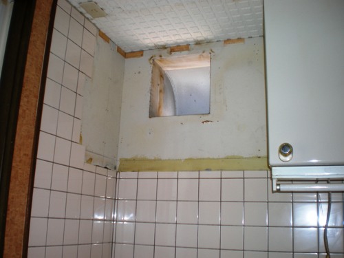 古いレンジフードを取り外したところです。