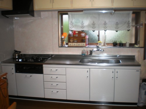 ■ 流し台を「システムキッチン」へ、吊戸棚とフード、混合水栓もお取替のご紹介。(2014/6/2)